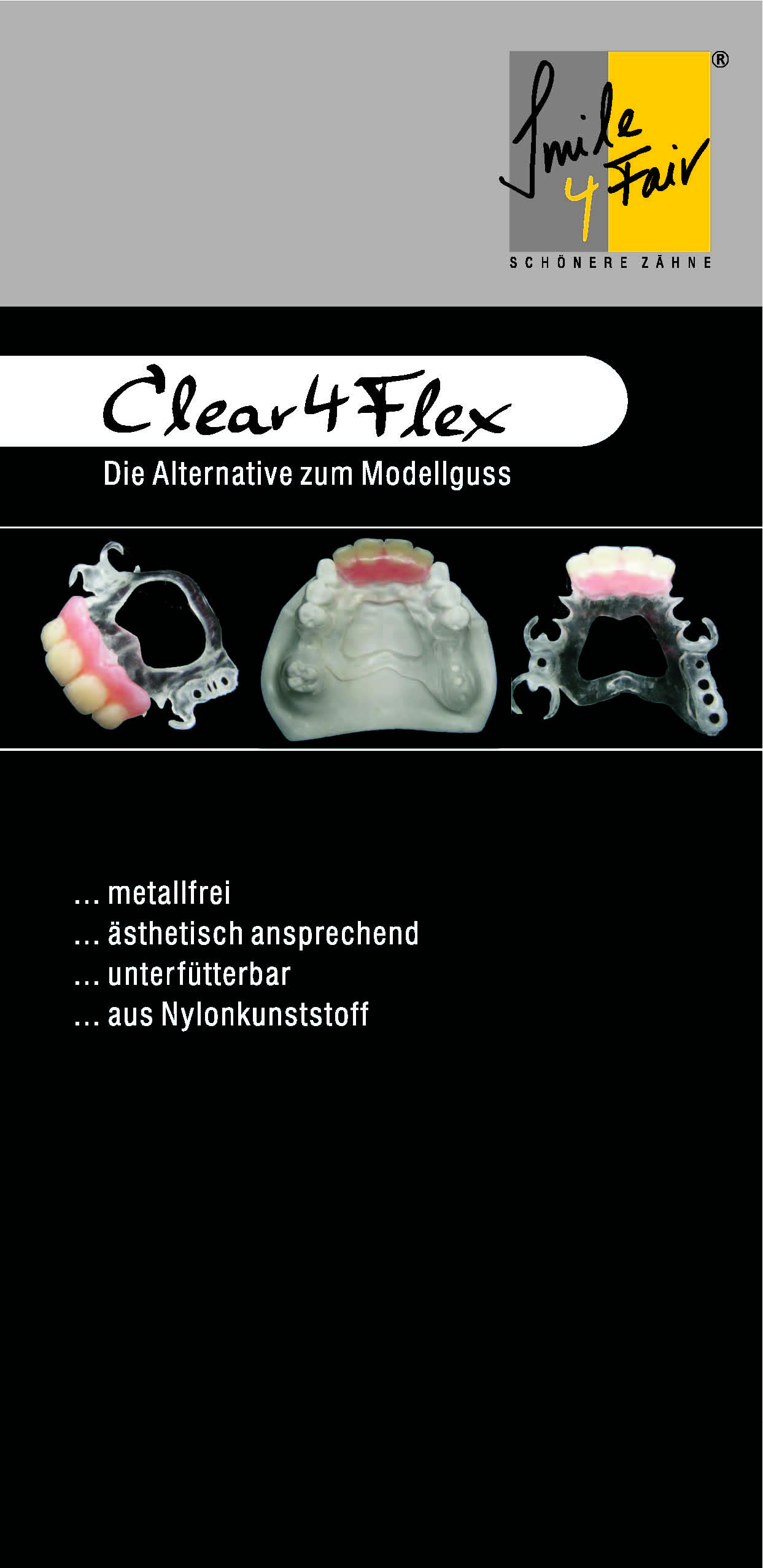 Smile4Flex ab 4 ers. Zähne | incl. aller Klammern Auf- u. Fertigstellung, Zähne Auflage Metall |